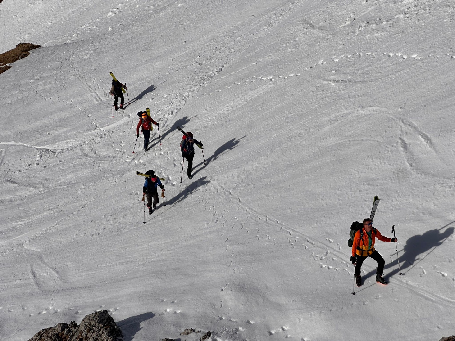 Přechod masivu Dachsteinu na sněžnicích byl krásným zážitkem, skvělou zkušeností i sportovním výkonem. Standa nás zodpovědně provedl Dachsteinem, načerpali jsme mnoho informací o pohybu ve volném horském terénu, o chování a bezpečnosti na ledovci i o prevenci před lavinovým nebezpečím.